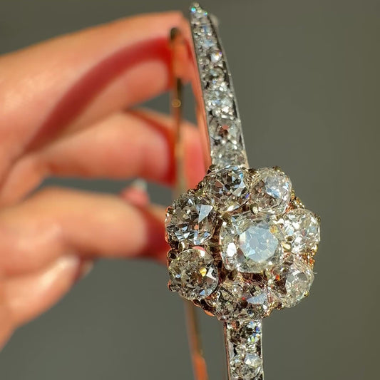 Antique 2.20 ct old mine cut diamond cluster bangle