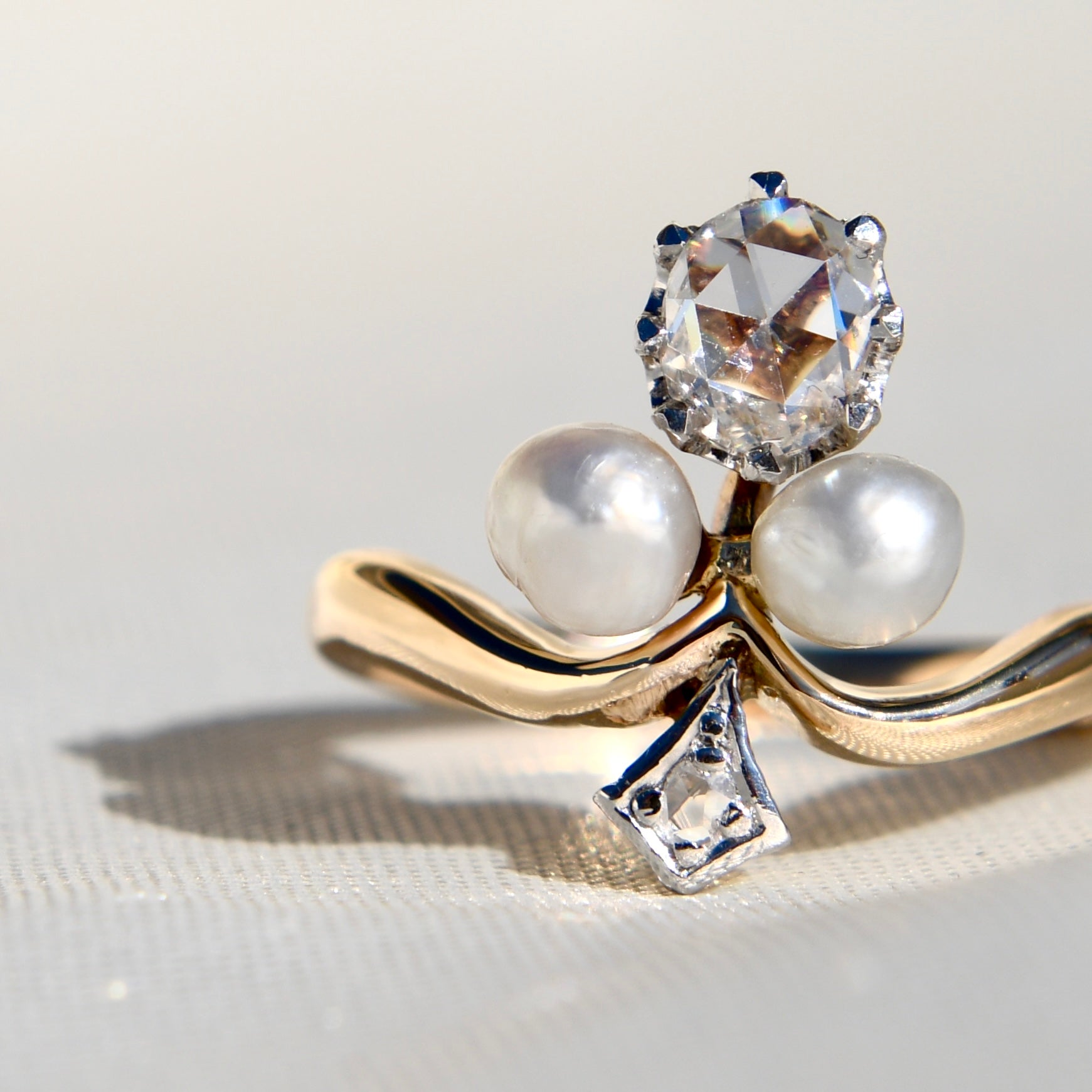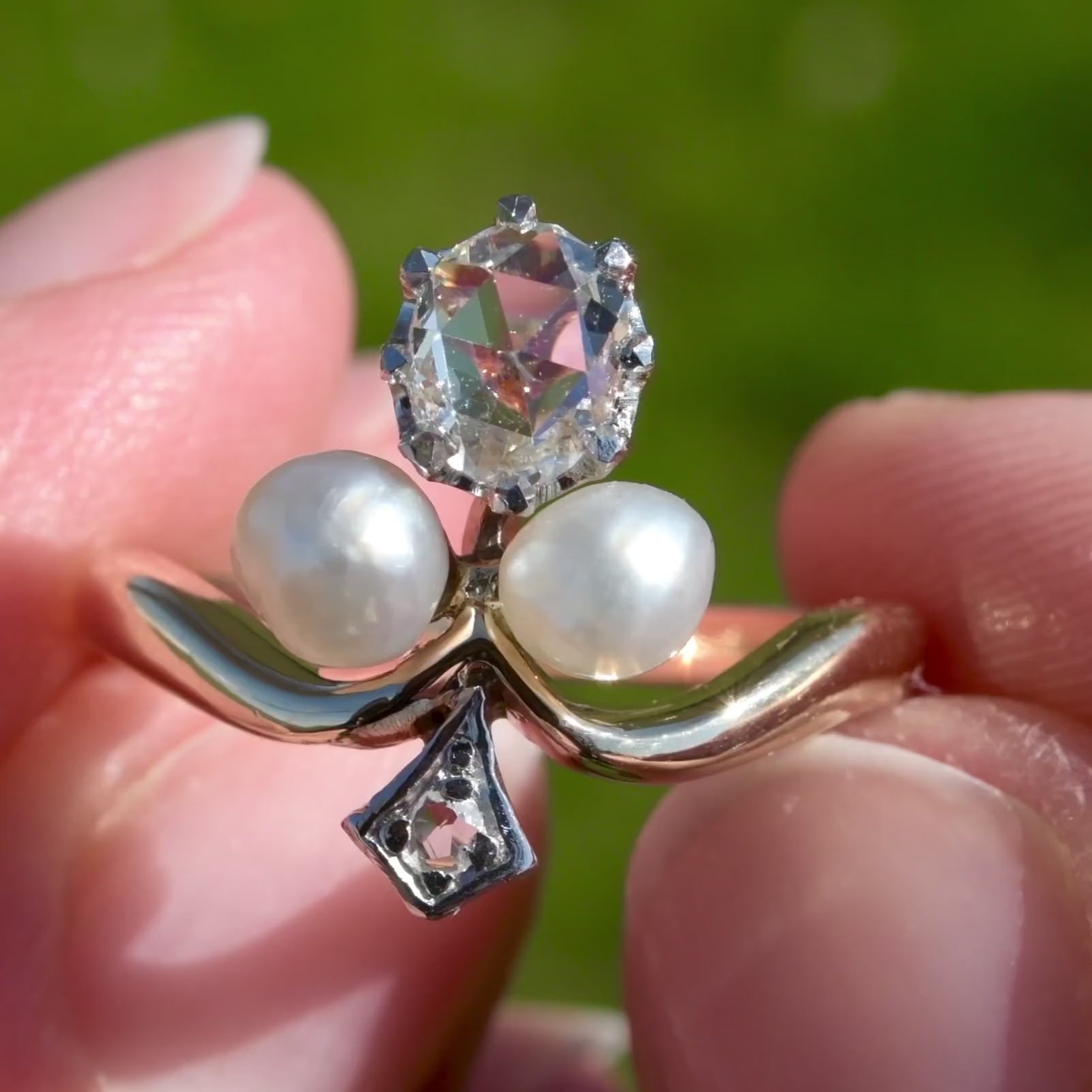 Antique 0.40 ct rose cut diamond and pearl tiara ring