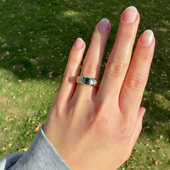 Vintage sapphire and 0.48 ct old European cut diamond band ring